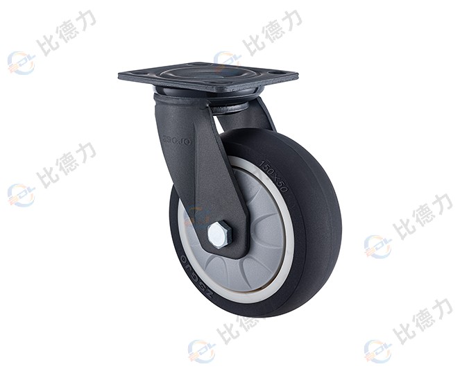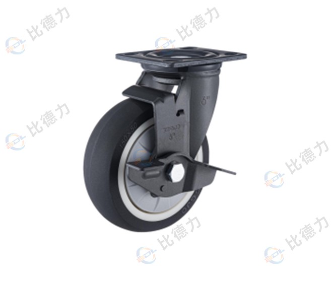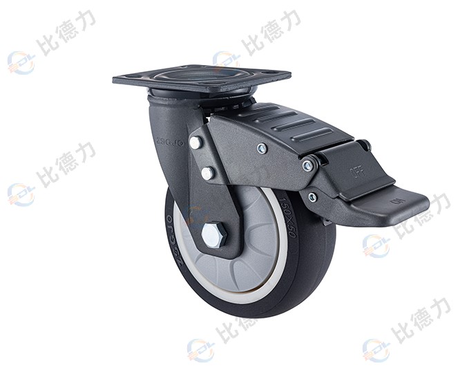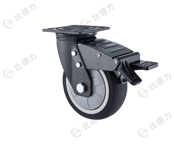 工匠牌 5寸 固定/万向/双刹/迭刹/边刹 双轴圆边黑色聚氨酯PU带防尘盖轮